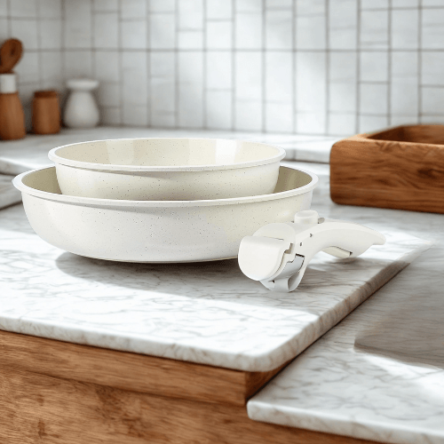 Opte pour une cuisine plus saine et minimaliste avec ce lot 3-en-1 en céramique 100 % sans produits toxiques (sans PTFE, PFOA, plomb, ni cadmium). Grâce à ses poignées détachables, gagne de la place dans tes placards et passe facilement de la plaque au four.